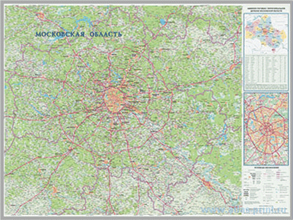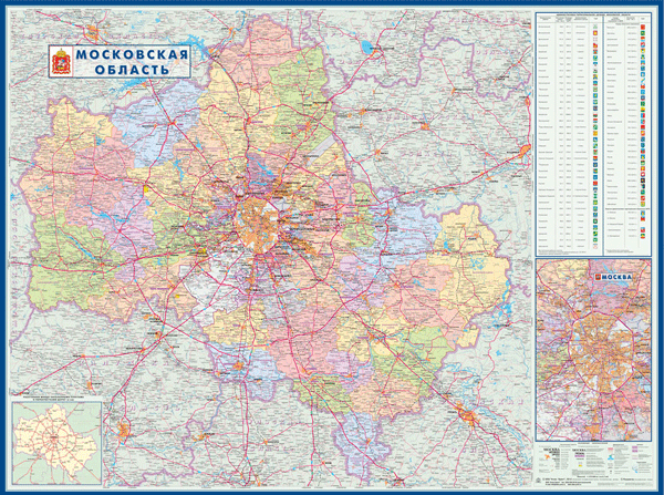 Настенная административная карта Московской области, мелованная бумага с ламинированием.