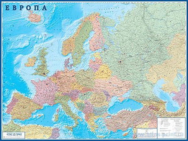 Настенная политическая карта Европы, включает полностью Европейскую часть России (до Урала). Мелованная бумага с ламинированием.